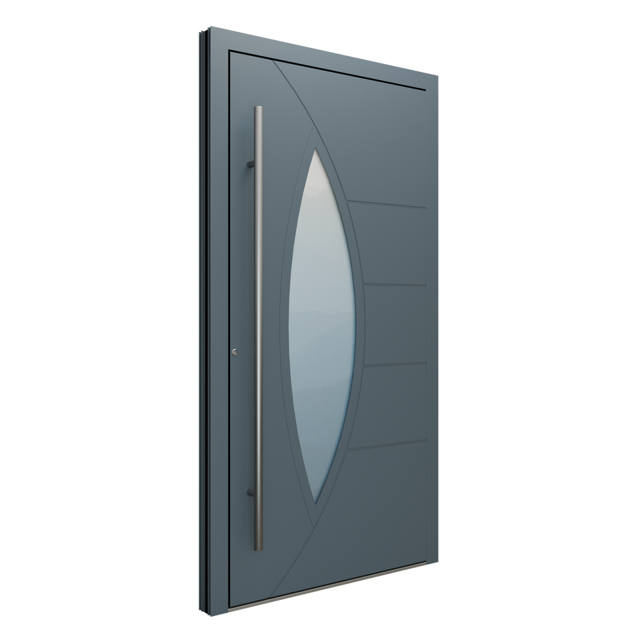 Modelul de ușă KB 1460 este disponibil în orice culoare RAL și poate fi echipat cu mâner tip bară, rotund sau pătrat, în lungimi de 200 / 160 / 120 / 50 cm. Colecția Alu Design aduce un design modern și minimalist, definit de frezări personalizate, linii curate și detalii elegante din oțel inoxidabil. Finisajele pot fi personalizate cu efect de lemn natural sau beton brut, oferind libertate deplină în crearea stilului dorit. Poți opta și pentru variante cu sticlă decorativă, adăugând un plus de lumină și rafinament intrării. Construcția din aluminiu, în grosimi de 75 mm sau 90 mm, asigură rezistență în timp și o izolație termică optimă (Ud până la 0,80 W/m²K). Sistemul de închidere multipunct, balamalele reglabile și pragul cu barieră termică garantează un plus de siguranță și confort zilnic.