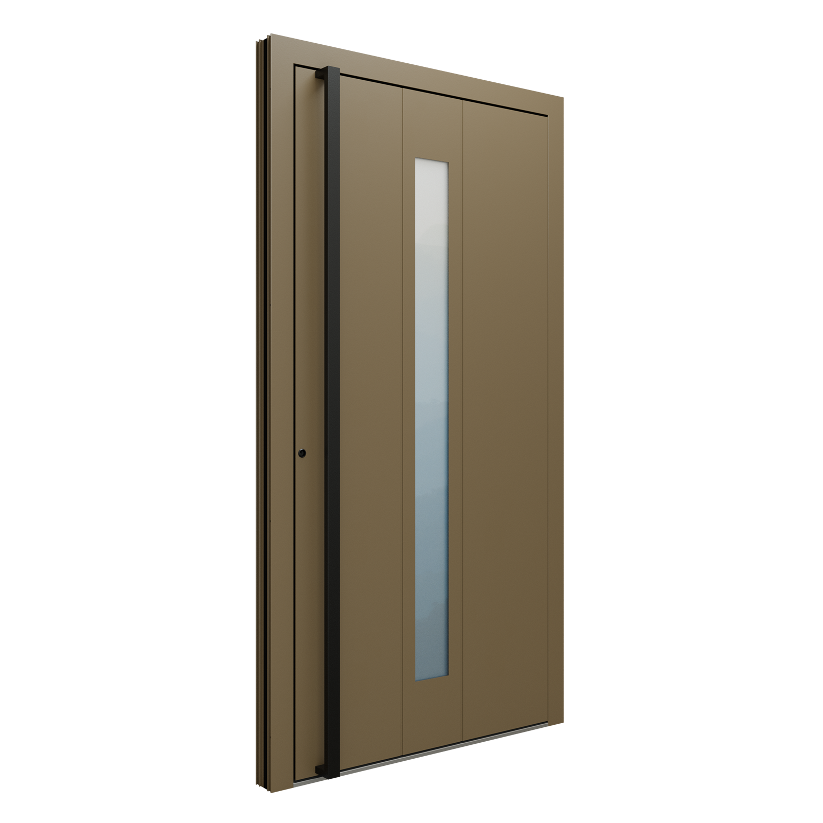 Modelul de ușă KB 1490 este disponibil în orice culoare RAL și poate fi echipat cu mâner tip bară, rotund sau pătrat, în lungimi de 200 / 160 / 120 / 50 cm. Colecția Alu Design aduce un design modern și minimalist, definit de frezări personalizate, linii curate și detalii elegante din oțel inoxidabil. Finisajele pot fi personalizate cu efect de lemn natural sau beton brut, oferind libertate deplină în crearea stilului dorit. Poți opta și pentru variante cu sticlă decorativă, adăugând un plus de lumină și rafinament intrării. Construcția din aluminiu, în grosimi de 75 mm sau 90 mm, asigură rezistență în timp și o izolație termică optimă (Ud până la 0,80 W/m²K). Sistemul de închidere multipunct, balamalele reglabile și pragul cu barieră termică garantează un plus de siguranță și confort zilnic.