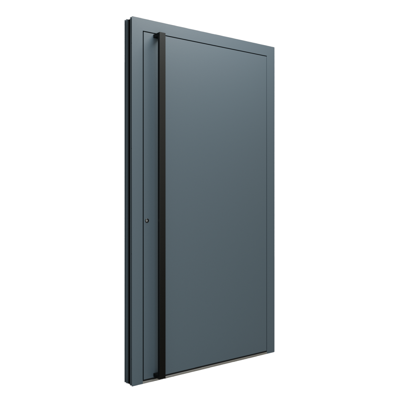 Modelul de ușă KB 200 este disponibil în orice culoare RAL și poate fi echipat cu mâner tip bară, rotund sau pătrat, în lungimi de 200 / 160 / 120 / 50 cm. Colecția Alu Basic aduce un design modern și minimalist, definit de frezări personalizate, linii curate și detalii elegante din oțel inoxidabil. Finisajele pot fi personalizate cu efect de lemn natural sau beton brut, oferind libertate deplină în crearea stilului dorit. Poți opta și pentru variante cu sticlă decorativă, adăugând un plus de lumină și rafinament intrării. Construcția din aluminiu, în grosimi de 75 mm sau 90 mm, asigură rezistență în timp și o izolație termică optimă (Ud până la 0,80 W/m²K). Sistemul de închidere multipunct, balamalele reglabile și pragul cu barieră termică garantează un plus de siguranță și confort zilnic.