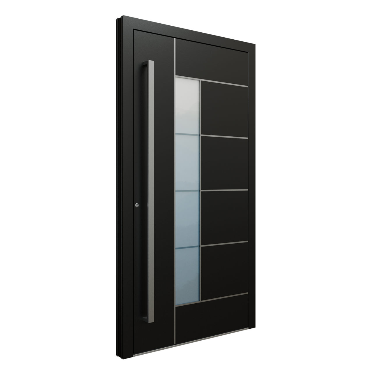 Modelul de ușă KB 450 este disponibil în orice culoare RAL și poate fi echipat cu mâner tip bară, rotund sau pătrat, în lungimi de 200 / 160 / 120 / 50 cm. Colecția Alu Design aduce un design modern și minimalist, definit de frezări personalizate, linii curate și detalii elegante din oțel inoxidabil. Finisajele pot fi personalizate cu efect de lemn natural sau beton brut, oferind libertate deplină în crearea stilului dorit. Poți opta și pentru variante cu sticlă decorativă, adăugând un plus de lumină și rafinament intrării. Construcția din aluminiu, în grosimi de 75 mm sau 90 mm, asigură rezistență în timp și o izolație termică optimă (Ud până la 0,80 W/m²K). Sistemul de închidere multipunct, balamalele reglabile și pragul cu barieră termică garantează un plus de siguranță și confort zilnic.