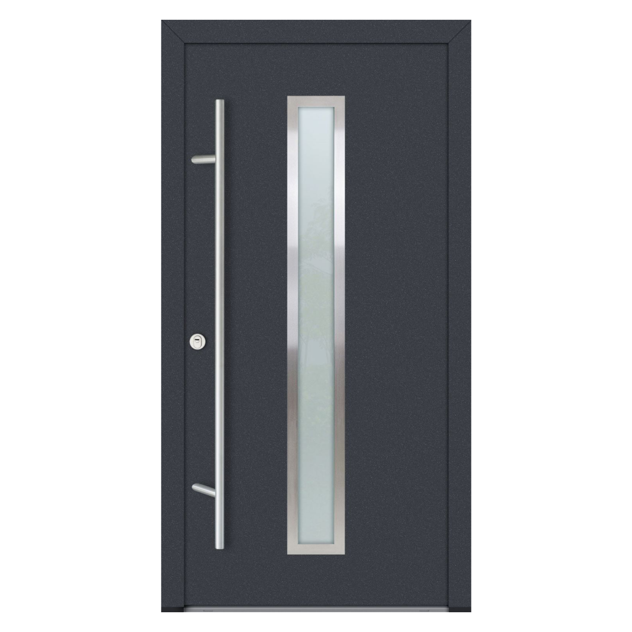 Modelul DS82 oferă o izolație termică avansată, cu performanțe de top în categorie: coeficient Ud de până la 0,68 W/m²K (fără vitralii) și 0,89 W/m²K (cu vitralii). Foaia de ușă are grosimea de 82 mm, iar cadrul din aluminiu cu barieră termică poate fi echipat, acolo unde se aplică, cu geam cvadruplu termoizolant, garantând eficiență energetică și confort optim. Pentru siguranță și stabilitate, ușa este dotată cu sistem de închidere Winkhaus în 5 puncte, broască cu cilindru și 5 chei, funcție antiefracție și antipanică, rozete cu protecție anti-găurire, tije anti-ridicare și balamale reglabile 3D. Designul poate fi personalizat în toată paleta de culori RAL, cu finisaje standard precum Antracit, Alb, Nuc, Stejar Auriu, Winchester sau Turner Oak. Opțional, se poate adăuga sticlă satinată sau gri grafit, oferind un plus de rafinament. Pragul din aluminiu cu barieră termică contribuie la confortul zilnic, iar opțional se poate integra o încuietoare electrică cu funcție zi/noapte. Ușa este compatibilă cu mânere premium, pentru interior și exterior. Produsă în UE pe o linie automatizată de fabricație, această ușă beneficiază de termene scurte de livrare și garanția calității oferite de Turenwerke.