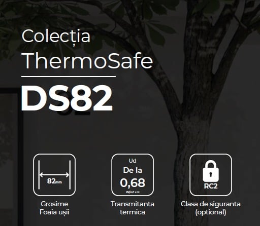 DS82 este o ușă de exterior cu izolație termică avansată și design modern. Acest model face parte din gama de top de uși de exterior, realizate din aluminiu și oțel, concepute pentru performanță termică, siguranță și un aspect elegant, potrivit atât pentru locuințe moderne, cât și pentru case clasice.