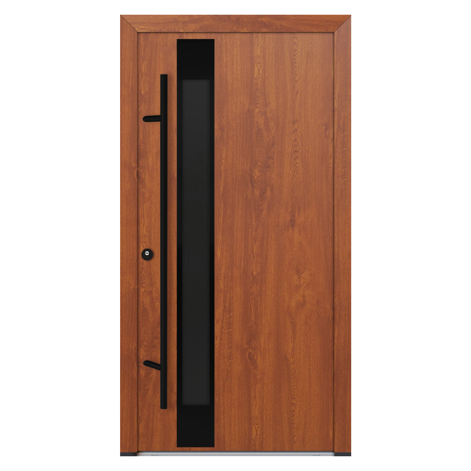 Modelul DS82 oferă o izolație termică avansată, cu performanțe de top în categorie: coeficient Ud de până la 0,68 W/m²K (fără vitralii) și 0,89 W/m²K (cu vitralii). Foaia de ușă are grosimea de 82 mm, iar cadrul din aluminiu cu barieră termică poate fi echipat, acolo unde se aplică, cu geam cvadruplu termoizolant, garantând eficiență energetică și confort optim. Pentru siguranță și stabilitate, ușa este dotată cu sistem de închidere Winkhaus în 5 puncte, broască cu cilindru și 5 chei, funcție antiefracție și antipanică, rozete cu protecție anti-găurire, tije anti-ridicare și balamale reglabile 3D. Designul poate fi personalizat în toată paleta de culori RAL, cu finisaje standard precum Antracit, Alb, Nuc, Stejar Auriu, Winchester sau Turner Oak. Opțional, se poate adăuga sticlă satinată sau gri grafit, oferind un plus de rafinament. Pragul din aluminiu cu barieră termică contribuie la confortul zilnic, iar opțional se poate integra o încuietoare electrică cu funcție zi/noapte. Ușa este compatibilă cu mânere premium, pentru interior și exterior. Produsă în UE pe o linie automatizată de fabricație, această ușă beneficiază de termene scurte de livrare și garanția calității oferite de Turenwerke.