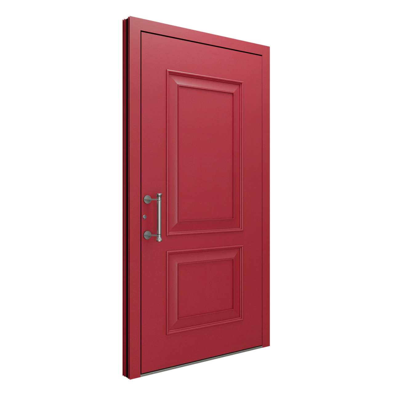 Modelul de ușă KB 1950 este disponibil în orice culoare RAL și poate fi echipat cu mâner tip bară, rotund sau pătrat, în lungimi de 200 / 160 / 120 / 50 cm. Colecția Alu Classic aduce un design modern și minimalist, definit de frezări personalizate, linii curate și detalii elegante din oțel inoxidabil. Finisajele pot fi personalizate cu efect de lemn natural sau beton brut, oferind libertate deplină în crearea stilului dorit. Poți opta și pentru variante cu sticlă decorativă, adăugând un plus de lumină și rafinament intrării. Construcția din aluminiu, în grosimi de 75 mm sau 90 mm, asigură rezistență în timp și o izolație termică optimă (Ud până la 0,80 W/m²K). Sistemul de închidere multipunct, balamalele reglabile și pragul cu barieră termică garantează un plus de siguranță și confort zilnic.